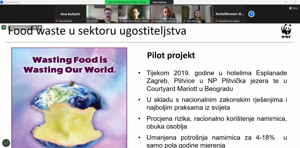 Na prvom zajedničkom webinaru UPUHH-a i WWF-a održanom 17. svibnja 2023. predstavljeni su projekti i aktivnosti usmjereni na smanjenje otpada od hrane u hotelima i ugostiteljskim objektima, procjenu usklađenosti održive nabave ribe i morskih plodova, kao i potencijal WWF-a u podršci postojećim ključnim ESG aktivnostima hotelskih kompanija.