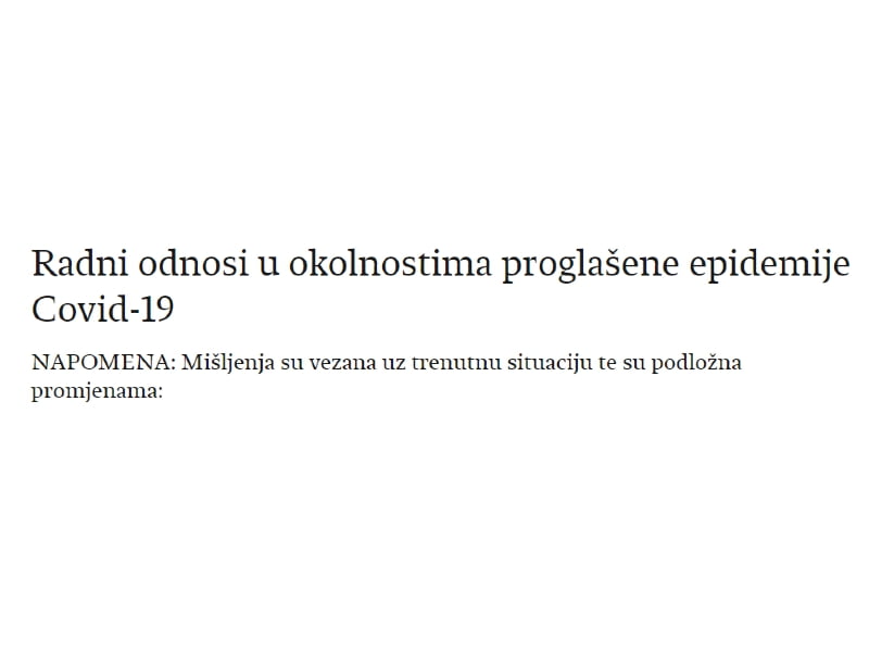 Ministarstvo rada i mirovinskog sustava RH objavilo je na službenim web stranicama mišljenja vezana uz radne odnose u okolnostima proglašene epidemije Covid-19.